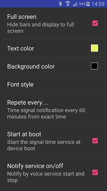 - choose the repetition interval (every 15, 30 and 60 minutes),