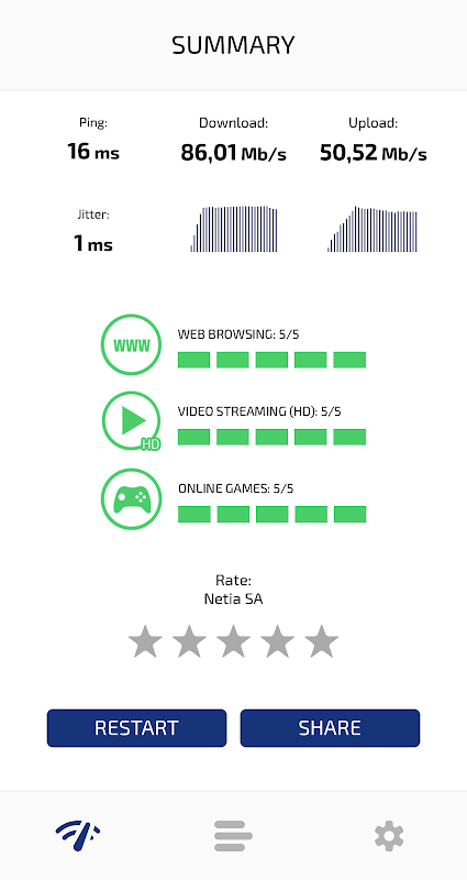 Speed Check Light is a lightweight Internet testing tool. This application helps you to measure the downlink speed (download), uplink speed (upload) and delays in the transmission of packets (latency/ping/jitter). The program is equipped with a simple user interface and a multitude of configuration options. One of the major advantages of Speed Check Light tool is automatic adjustment of the testing algorithms to the type of your connection (WiFi or 2G/3G/4G LTE/5G mobile networks). This ensures a high accuracy of the results.