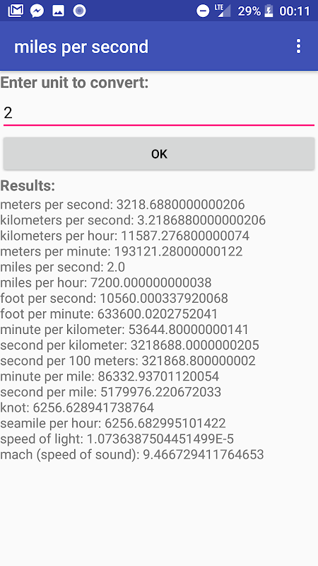 Use this useful tool to convert speed choosing one of the 17 units of measurment included in this app, that are: