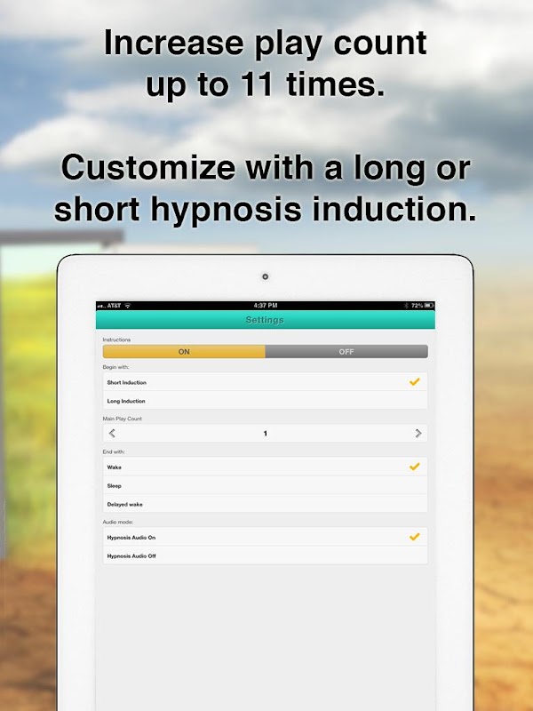 * Each session can be customized with the option to listen to the hypnosis track up to 11 times