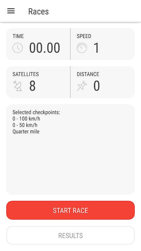 Easy way to know 0-100 km/h, 0-60 mph, top speed, quarter mile and many other speed and distance checkpoints. You can add your own checkpoint as well. Save and share results with friends.