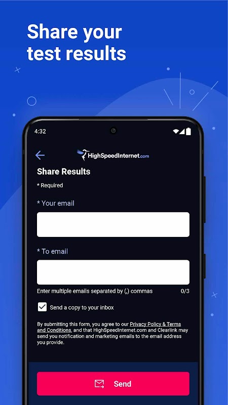 • Share your speed test result by email