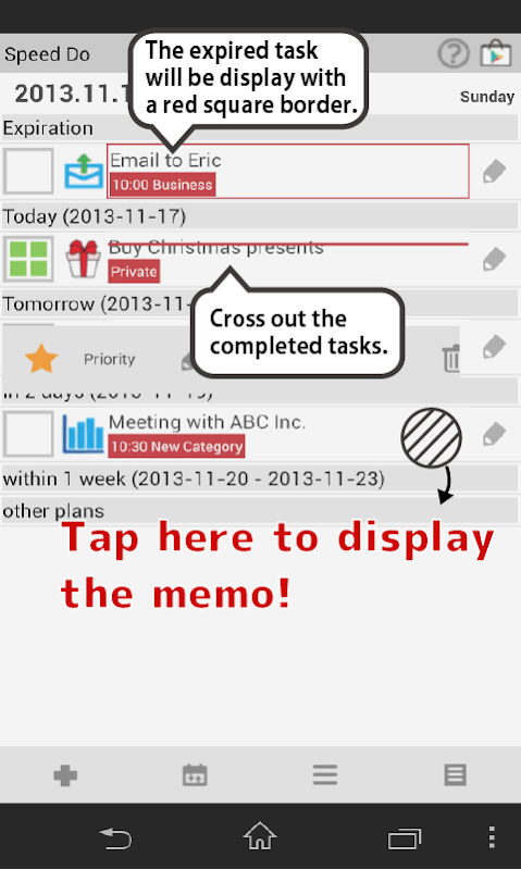 1 Add new tasks(memo/add icon/categorize/deadline/time/alarm).