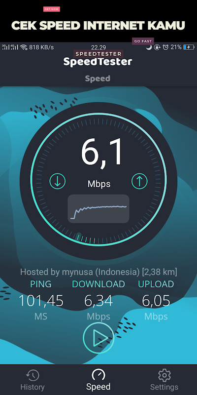 Dengan fitur yang mudah langsung cus ngecek kecepatan internet mu , jangan lupa di screen shoot dan share seberapa cepat internet yang kamu punya :)
