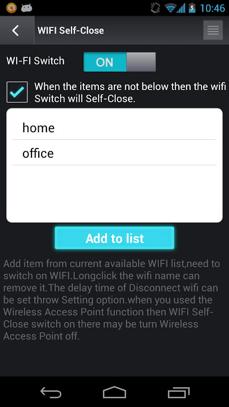 When the access point of Wi-Fi that you specify is unconnected, it automatically turns off the Wi-Fi function.