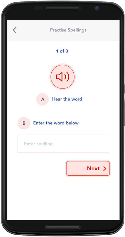 The app helps you practice your spelling test. This app lets you enter your own spellings.