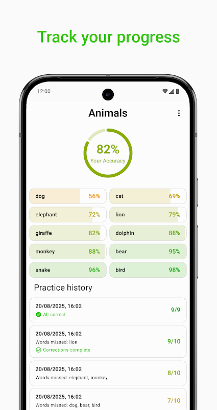 • Smart Reminders: Get intelligent notifications for upcoming spelling tests, helping to establish consistent practice habits.