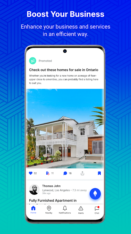 Advertise your business and services in an efficient way. Boost your reach in your local zone or around the globe just by a few taps.