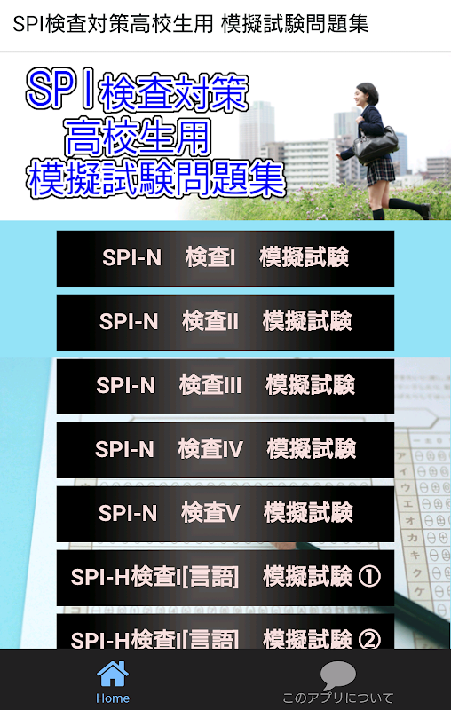 このアプリは就職試験・採用試験を受ける高校生・専門学校生・短大生用のためのSPI検査対策用の学習アプリです。