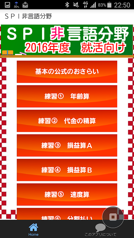 このアプリはSPI非言語分野のスキル対策向けオリジナル問題集です。適性検査では、よく使われます。また文系よりも理系よりの問題を作成。筆記試験はぜひ通過しよう。