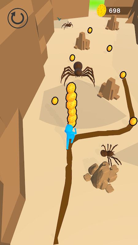 In this unique puzzle game, your goal is to navigate through the spider's lair, stealing their eggs without getting caught. The movement is by drawing your own path, you'll need to be strategic and careful as you avoid the spiders and their webs.