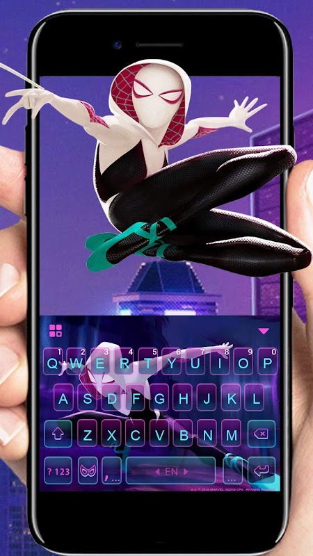 Spider-Gwen: Into the Spider-verse Theme. Want your phone to be awesome?Let the Spider-Gwen Theme help you! Get the Spider-Man keyboard and start your splendid experience now!