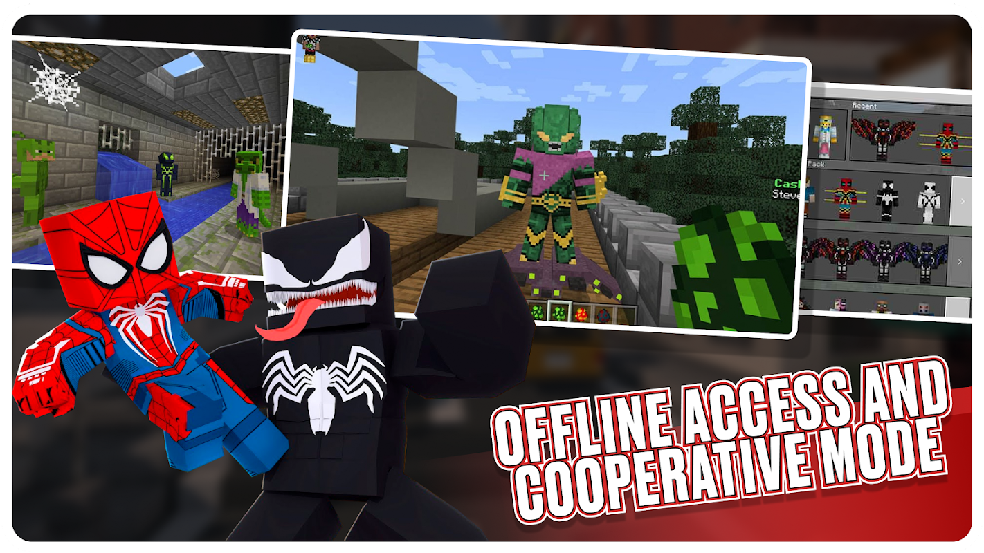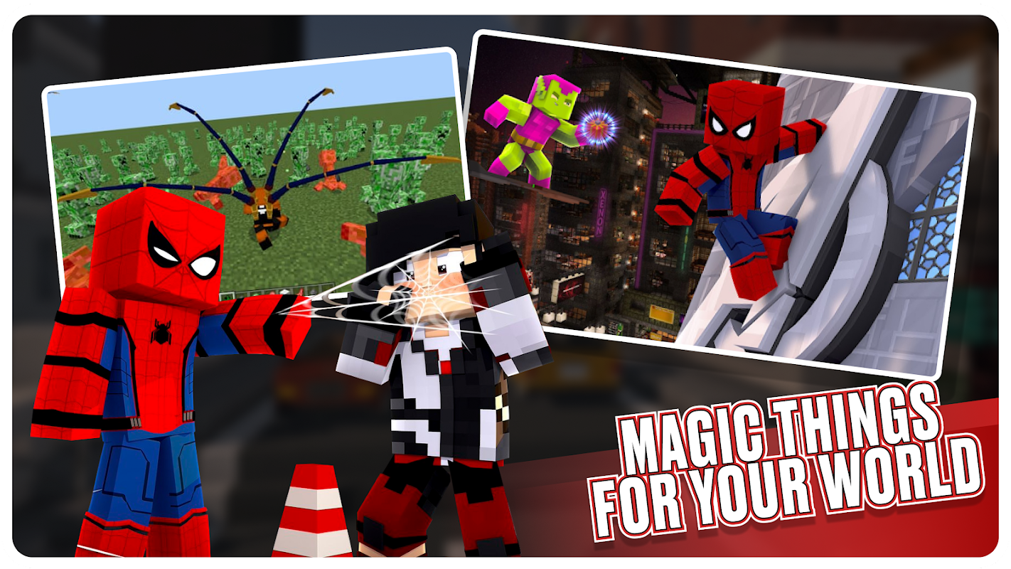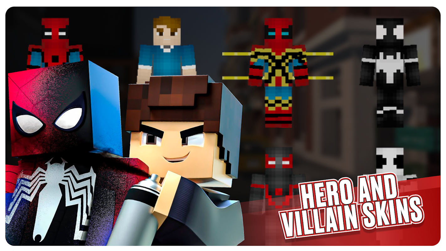 Spider-Man mod for Minecraft Pocket Edition is a addon that all fans of the Marvel universe have been waiting for. This addon adds the Minecraft Spider-Man skin Bedrock, and also many features related to superheroes, such as: Minecraft Spider Man, Superman, Venom and others. Players in MCPE will have access to updated armor and skins that can be painted. That is, each player will be able to create his own personal Superhero or Superman skin / costume.