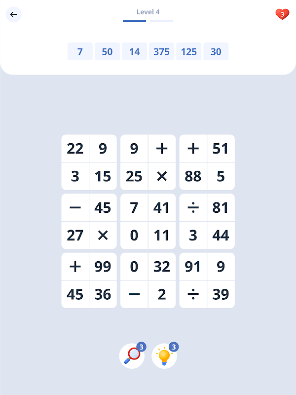 Upon entering a level, you are given a clue that hints at the mathematical equation you need to form. Once you decipher the clue, you start spinning the squares to align the numbers correctly and create the equation.