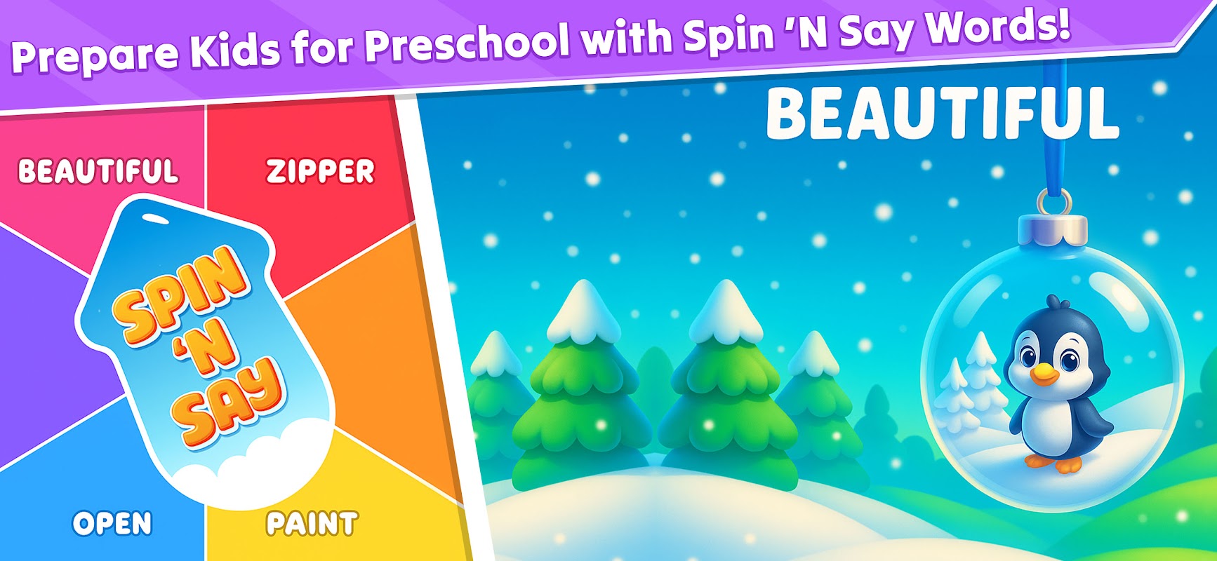 Spin 'n Say is a dynamic tool that empowers children to enhance their vocabulary, speaking skills, and word comprehension at an accelerated pace. Through engaging interactive design and captivating animations, children can effortlessly grasp new words in an enjoyable manner.
