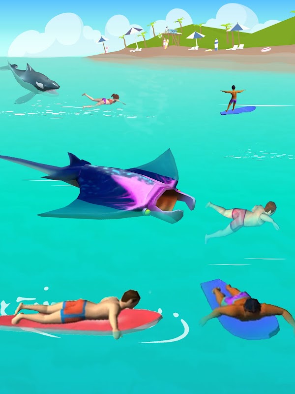 The beach is full of innocent people. Attack them when they are unaware and watch out for other hungry sharks.