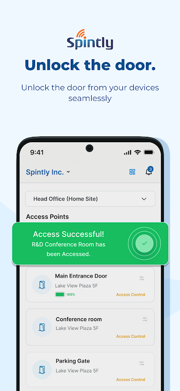 Spintly Smart Access allows users to quickly and seamlessly open a door connected to the Spintly Access Control system with their smartphone. The application works only with the Spintly Access Control system. To ensure a seamless and frictionless door opening experience possible ,we use the following technology in your phone to ensure the best door opening experience possible: Bluetooth low energy, Wifi and LTE capabilities as well as location services. To ensure you are authorized as a user of your company’s Spintly Access Control system, please contact your administrator, who will check to see that your email address has been added and will send you links to enable your application to be authorized and credentialed. If you would like to start using Spintly Mobile Access in your organization visit www.spintly.com to learn more about the services.