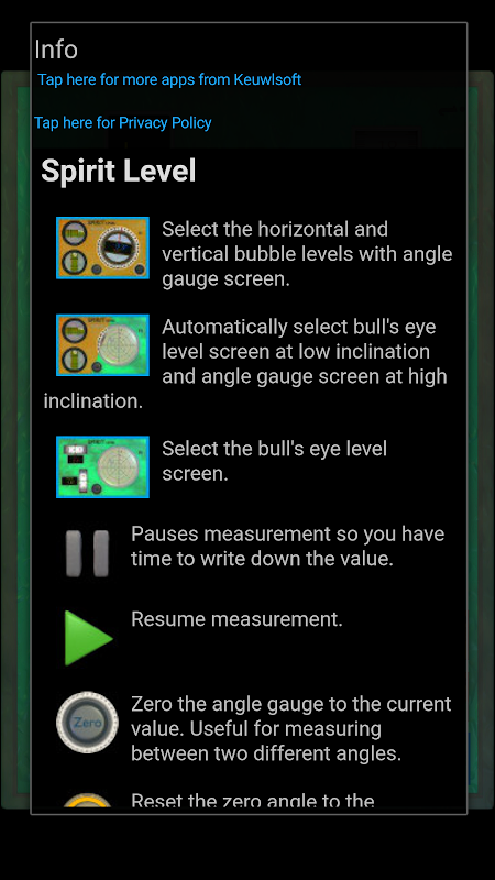 For best results touch CAL and calibrate first. The Spirit Level is only as good as your accelerometer. For indication only. Don't damage your tablet or phone, use a real spirit level when appropriate.