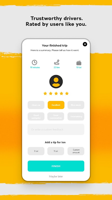 Driver information is available once your ridesharing order is taken. Enjoy smooth transport to your destination. Upon arrival, you can rate your driver and offer complete feedback.
