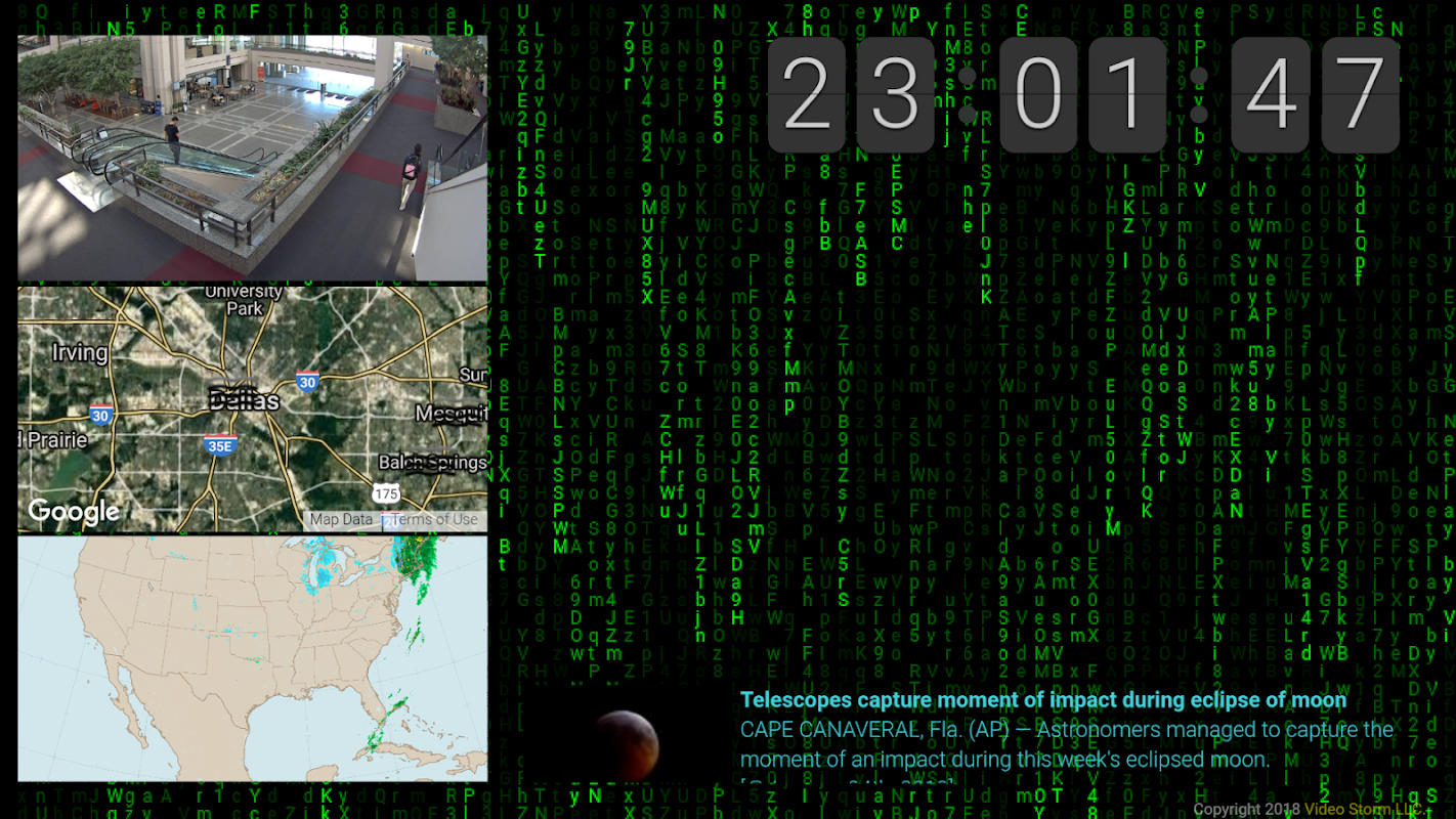 Your SplashTiles Cloud account allows you to easily create customized "Screens" which include news, weather, stocks, IP cameras, Twitter, Facebook, sports scores, traffic, radar, photos, and much more. All the best of the Internet condensed into what you want to see!