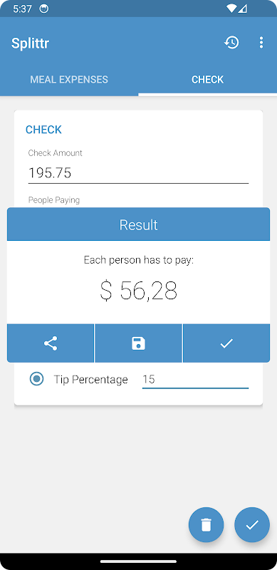 -Split the check: Perfect for dining out with friends or family. Easily divide the bill into equal parts, with tip options included.
