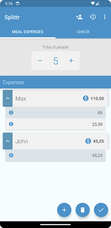 -Divide meal expenses: Ideal for meals at home or gatherings where multiple people contribute. This feature calculates what each person owes (or should receive) based on the expenses added.
