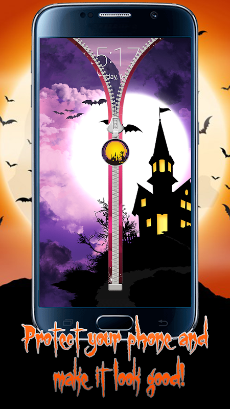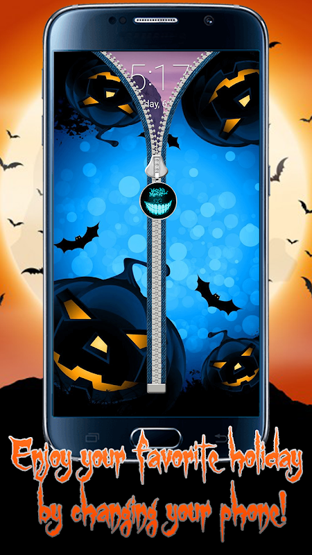 🕸 Get ready for Halloween and scare away the intrudes form your phone! Download our special edition "zip locker" program that will send shivers down your spine! Spooky Halloween Theme Zipper Lock Screen App lets you decorate your phone screen with awesome backgrounds and creepy pendants: snakes, spiders, carved pumpkins and eerie skeletons will make your device sensational and the spooky zipper locker background will give you creeps every time you "slide to unlock" your phone! The best "keypad lock" program you can find on Android™ market helps you customize your phone with amazing "lockscreen themes"! Add some haloween decorations to your "lock screen wallpaper" and make it unique! The coolest background wallpapers, weird designs, nightmarish wonders and scary ideas are waiting for you in our "Spooky Halloween Theme Zipper Lock Screen App", so download it right now and start trick or treating a bit earlier!