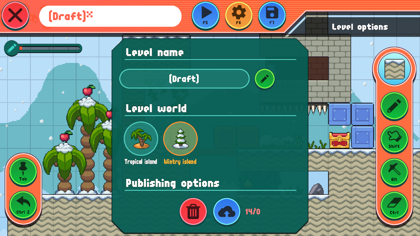 - Level editor. Create your own levels with a variety of traps, constructions, scenery... Publish your creations so that the community can compete against you!