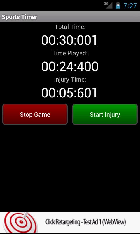 Stopwatch app that allows you to track of full time, game time and injury time.