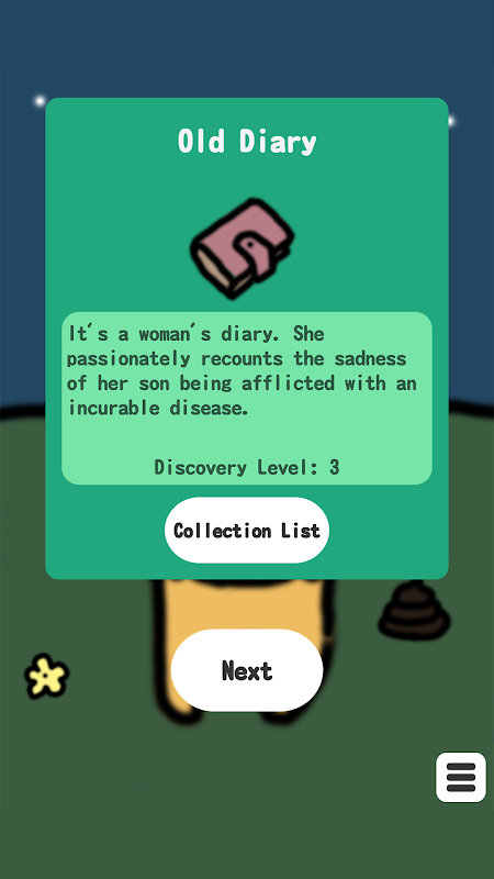 The odd items that Spot presents to you range from mundane things like bones and worn-out shoes to valuable items like gems and gold nuggets. Take a look at old photos and diaries hidden in abandoned houses, and imagine the comedies and tragedies experienced by their previous owners. The blood-stained handkerchief that Spot brings back one day might serve as a crucial clue in an unsolved mystery. What sad memories might be encapsulated in the small, ownerless ring? Through these unusual objects, catch glimpses of the lives of their past owners.