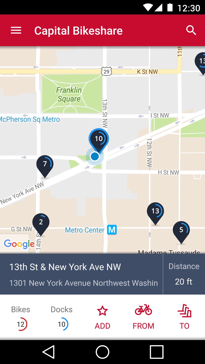 • Detects your location to help you find the stations closest to you for available bikes and/or bike docks