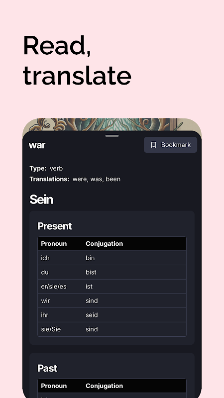 Explore detailed conjugations and grammar forms