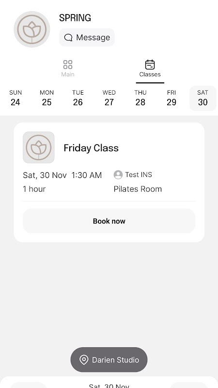 The Spring Pilates app lets you book in-person classes