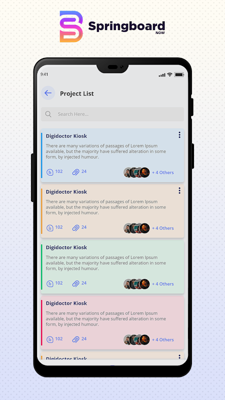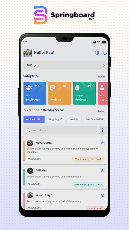 Springboard Now admin, which can track the project working status, and the daily basis task of the developer. admin can create all masters like Designation master, Department master, project master, project type master, Assign project master, Organization master and user master. admin can assign the project to TLDeveloper and Developer.TLDeveloper can track the daily task and create daily tasks for the developer.TLDeveloper can create a Module master, Storyboard, Timeline and Task board. The developer can update the work status daily basis with tasks like in progress, Completed, Hold, and Start. Tester can test the project and raise a ticket to the major, minor and critical bugs.