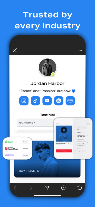 2. Add social media profiles, websites, music playlists, videos, podcasts, forms,