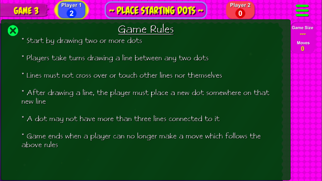 - Simple Rules, Endless Depth: Draw lines and create new dots, but don't cross lines! Plan ahead to outsmart your opponent and claim victory.