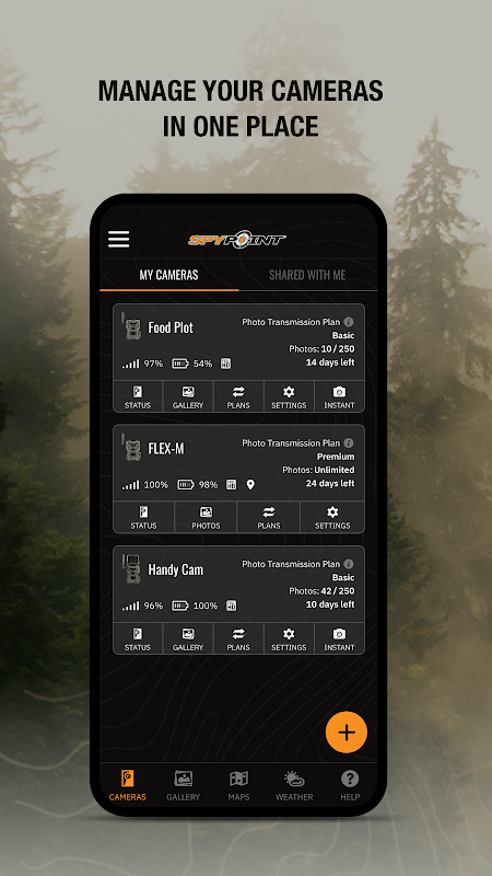 Manage your SPYPOINT cellular trail cameras and receive photos and videos.