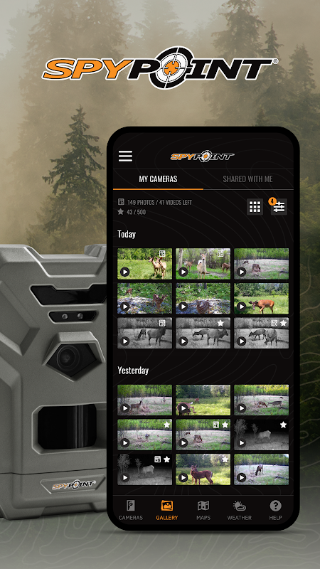 The SPYPOINT app allows you to receive high-quality photos and videos from your SPYPOINT cellular trail camera directly to your smartphone or tablet. It also provides a simple and easy way to: