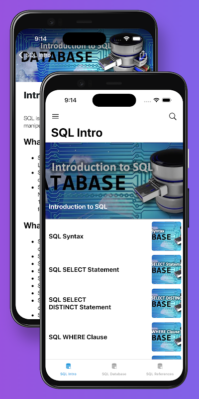 Learn SQL in a simple way, at any time. This application can be used by beginners or advanced in the database environment, to learn the syntax, learn how to insert, update, delete and extract records from a database, among many other functions.
