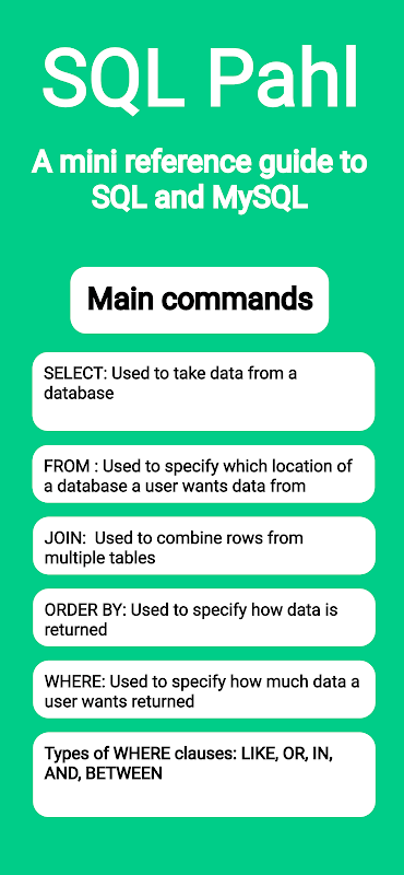 SQL Pahl is a short reference guide to all things related to SQL and MySQL. App is currently in early beta release.