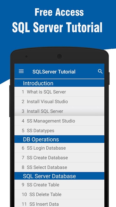 SQL Server Tutorial provides basic and advanced concepts of SQL Server. Our SQL Server Tutorial is designed for beginners and professionals both.SQL Server is software (A Relational Database Management System) developed by Microsoft. It is also called MS SQL Server. It is implemented from the specification of RDBMS.Our SQL Server Tutorial includes all topics of SQL Server such as SQL Server tutorial with SQL Server, install visual studio, install SQL Server, architecture, management studio, datatypes, db operations, login database, create database, select database, drop database, create table, delete tabel, update table, min function, max function, sum function, sql operators, advance operator, clauses, create view, keys constraints and indexes, primary keys, foreign keys,indexes etc.