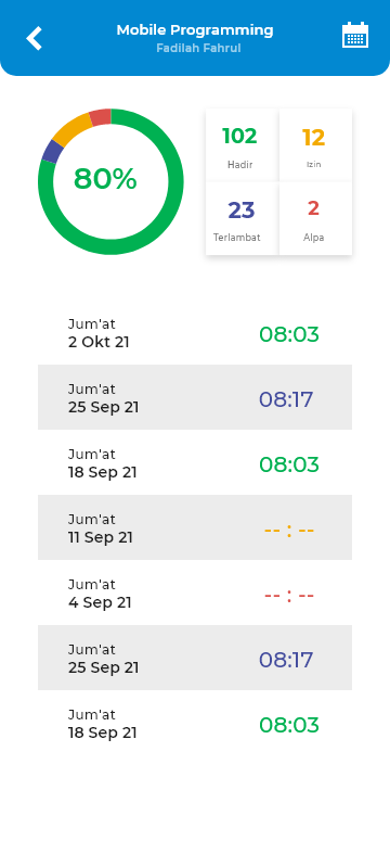 Ingin aplikasi absensi yang mudah dan cepat? Square Checks solusi untuk Anda dengan fitur One-Click absen dan reminder ketika presensi kelas sudah dibuka serta dilengkapi dengan rekap absensi yang dapat diekspor ke PDF.