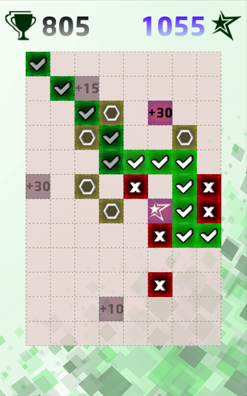 It is easy and simple to learn the logic square pattern but it is challenging to execute the pattern with instant reflex of mind. The Player will have 2-4 starting points in each level and after clicking one of them, he can click only on circle-marked fields. To complete a level, player has to click all green marked fields. Once a level is complete, the player can play the level again or he can opt for the next level to play.