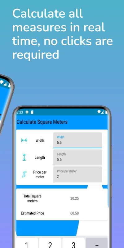 ✔️This app also allows you to calculate the price per square meter by pressing a simple button.