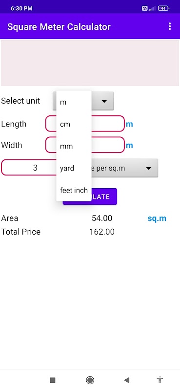 This app is used to calculate area for given length and height. You can enter length and height in different units like meter, feet, inch, mm, cm, yard etc and Answer you will get in acres, square meter, square foot, square yard, hectare, square miles etc.