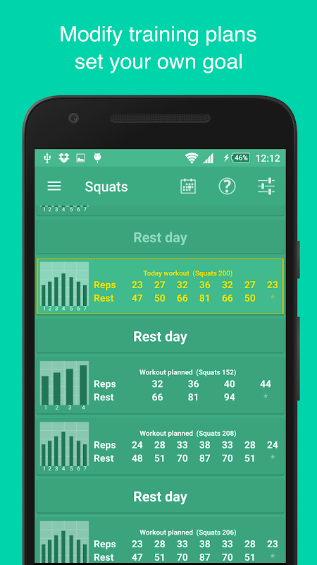 Automatic coach can generate advanced mesocycle to increase training effect and prevent over-training. Also you can plan everything yourself and use only advanced timer, and history tracker.