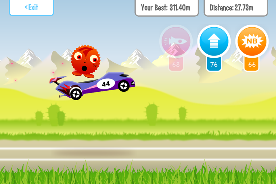 ★ "Squeeble-cart" mini game gives children a reward for doing well in their math questions. For each question they get right, they win one turn on the game. The game involves trying to send a car with a Squeeble in it as far as possible down a race track.