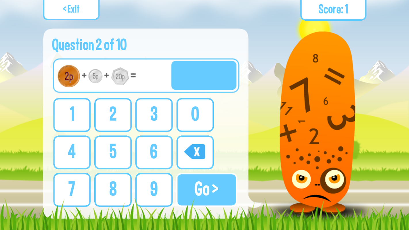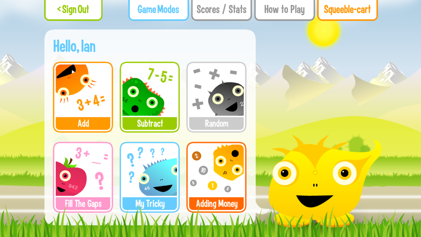 By answering addition and subtraction questions across a variety of game modes and difficulty settings, you can free the 24 Squeebles from the clutches of the nasty Maths Monster as well as earn turns on a fun mini-game as a reward for doing well in your math tests.