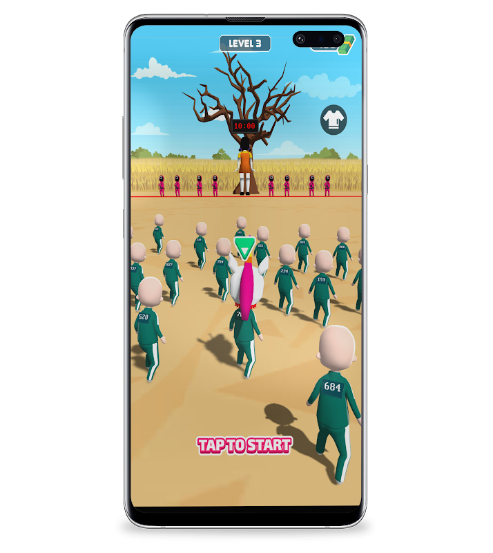 Squid Game with 3D Graphics has great effects and sections for you. Red light green light In Squid Game, you can pass all levels and finish the game in the final.