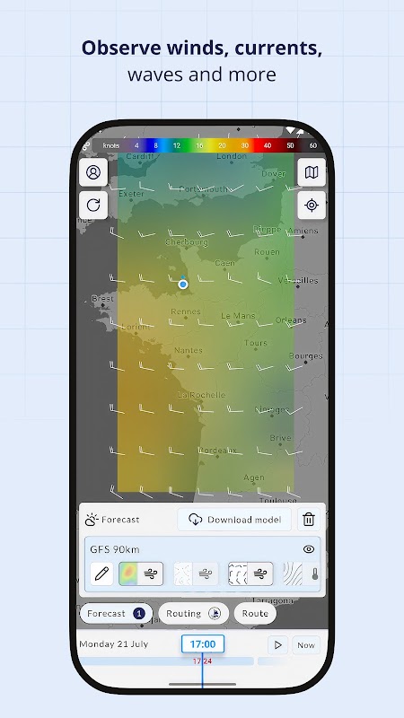 Built for performance and designed for simplicity, the app delivers accurate, multi-model weather data — optimized for offshore use with minimal internet consumption.